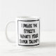 Ein lustiger Slogan auf einer Tasse, die sagt: "Ich poliere die Straßen. Was ist IHR super Talent?" Tasse für einen Polizisten, Polizeibeamten oder Polizeibeamten. Schwarzweißtext.