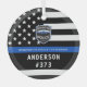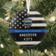 Thin Blue Line Police Department Weihnachtsschmuck - Amerikanische Flagge in Polizei Flag Farben, moderne schwarz und blau Design . Passen Sie sich mit Ihrem Abteilungslogo an, und personalisieren Sie die Personalisierung mit dem Namen der Polizeibeamten und der Abzeichen-Nummer. Dieses personalisierte Vollzugsschmuck eignet sich hervorragend für Polizeidienststellen und Strafverfolgungsbeamte, kleine Geschenke und Weihnachtsgeschenke für Polizeibeamte. Bestellen Sie diese Polizeischmuck Großhandel für die Polizeiakademie oder Polizeidienstgifte, polizeiliche Weihnachtsfeiern kleine Geschenke. COPYRIGHT © 2020 Judy Burrows, Black Dog Art - Alle Rechte vorbehalten. Polizeiabteilung Logo Blue Law Enforcement Glass Ornament