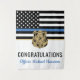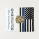 Dieses Design verfügt über eine Polizeiflagge mit schwarz-weißen Streifen und einen dünnen blauen Streifen. Ein großartiger Weg, um der neuen Polizei-Akademie zu gratulieren. Passen Sie den Namen des geschlossen Strafverfolgungsbeamten in Gold an. Feiern Sie diesen Meilenstein im Stil!