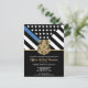 Ehre den Einsatz und die harte Arbeit eines neuen Strafverfolgungsbeamten mit dieser anpassbaren Einladung des Abschlusses. Dieses Design mit einem polizeilichen Abzeichen und einer Polizeifahne mit fett schwarz-weiß Streifen und einer stolzen blauen Linie symbolisiert Stärke, Service und Opfer. Die Einladung ist personalisiert mit dem Namen des Absolventen in Goldschrift, was es zu einem unvergesslichen Sake für Freunde, Familie und Kollegen macht. Ideal, um einen Abschluss, eine Werbeaktion oder einen Meilenstein in der Karriere eines zukünftigen Offiziers zu feiern. Laden Sie Ihre Gäste stilvoll ein und zeigen Sie Unterstützung für das neueste Mitglied der Thin Blue Line Community.