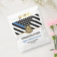 Dieses Design verfügt über eine Polizeiflagge mit schwarz-weißen Streifen und einen dünnen blauen Streifen. Ein großartiger Weg, um der neuen Polizei-Akademie zu gratulieren. Passen Sie den Namen des geschlossen Strafverfolgungsbeamten in Gold an. Feiern Sie diesen Meilenstein im Stil!