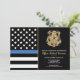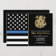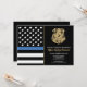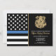 Ehre den Einsatz und die harte Arbeit eines neuen Strafverfolgungsbeamten mit dieser anpassbaren Einladung des Abschlusses. Dieses Design mit einem polizeilichen Abzeichen und einer Polizeifahne mit fett schwarz-weiß Streifen und einer stolzen blauen Linie symbolisiert Stärke, Service und Opfer. Die Einladung ist personalisiert mit dem Namen des Absolventen in Goldschrift, was es zu einem unvergesslichen Sake für Freunde, Familie und Kollegen macht. Ideal, um einen Abschluss, eine Werbeaktion oder einen Meilenstein in der Karriere eines zukünftigen Offiziers zu feiern. Laden Sie Ihre Gäste stilvoll ein und zeigen Sie Unterstützung für das neueste Mitglied der Thin Blue Line Community.