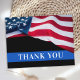 USA American Flag Thin Blue Line Police Dankeschön Card - Amerikanische Flagge und dünne blaue Linie , modernes Design auf schwarz. Zeigen Sie Ihren Dank an einen hervorragenden Polizeibeamten oder Strafverfolgungsbeamten mit dieser dünnen blauen Flagge Amerikas, perfekt für die Anerkennung der Polizei, Polizisten und Polizeidienststellen, Polizeiwoche und Strafverfolgung . COPYRIGHT © 2020 Judy Burrows, Black Dog Art - Alle Rechte vorbehalten. Polizeiliche Durchsetzung amerikanischer Flaggen Danke an Postcard