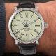 Eine Armbanduhr, die als Geschenk für die Anerkennung des loyalen Dienstes eines Sergeanten in der Polizei entworfen wurde. Fügen Sie den Namen des Empfängers sowie die Abteilung oder Organisation hinzu. Hintergrund im Pergament.