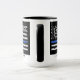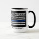 Personalisierter Polizeibeamter Kaffeemaschine Tasse mit einer Not leidenden amerikanischen Fahne mit blauer Linie, einem Abzeichen und dem Namen des Offiziers. Fügen Sie den Namen des Offiziers für ein Geburtstagsgeschenk, Ruhestand und andere besondere Anlass hinzu.