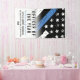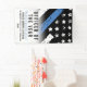 Dieses Design verfügt über eine Polizeiflagge mit schwarz-weißen Streifen und einen dünnen blauen Streifen. Dieses Banner ist ideal, um einem Offizierssheriff, Kapitän oder Chef für ihren Dienst zu danken und sie als Offizier des Jahres zu erkennen.