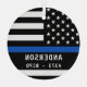 Personalisiertes Thin Blue Line Ornament - Amerikanische Flagge in der Polizei Flag Farben, modernes schwarz blaues Design. Personalisieren Sie diese polizeilichen Weihnachtsschmuck mit Namen, Abzeichen und Abteilung des Offiziers. Dieses personalisierte Polizeischmuck ist ideal für Polizeidienststellen, Strafverfolgungsbeamte oder als Gedenkstätte. Bestellen Sie diese Polizeischmuck Großhandel für die Polizeiakademie oder Polizeidienstgifte, polizeiliche Weihnachtsfeiern kleine Geschenke. COPYRIGHT © 2023 Judy Burrows, Black Dog Art - Alle Rechte vorbehalten. Personalisiert dünne blaue Linie Polizeidirektor Glasverzierung