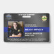Identifizieren Sie sich und Ihren Polizeibeamten in der Polizeiabteilung einfach mit diesen kleinen blauen Linien personalisierten Foto, Logo, Bar-Code, Polizei-Identifizierungskarte Abzeichen. Personalisieren Sie mit Polizeibeamten Foto, Name, Abzeichen-Nummer, Details und Polizeidienststelle. Passen Sie Ihr Polizeilogo, Ihr Staat-Siegel und Ihr Barcode an. Dieses dünne Abzeichen mit einem Polizeiausweis ist perfekt für alle Polizeibeamten, Strafverfolgungsbehörden, Sergeant, Chef, Kapitän und Leutnant. COPYRIGHT © 2020 Judy Burrows, Black Dog Art - Alle Rechte vorbehalten. Polizeibeamter Foto-ID-Abzeichen für die Rechtsdurchsetzung