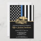 Dieses Design verfügt über eine Polizeiflagge mit schwarz-weißen Streifen und einen dünnen blauen Streifen. Das polizeiliche Abzeichen und der Goldtext liegen über allen Einzelheiten des Party für den pensionierten Strafverfolgungsbeamten, Sheriff, Kapitän oder Chefs des Party für das im Ruhestand.