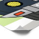 Ein Polizist im Stil eines Cartoon, der vor seinem Polizeiauto stehend ist. Dieses Design sieht wirklich effektiv aus auf diesem Poster