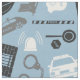 Politisches Themenmuster mit Polizeiwagen, Handschellen, Abzeichen und anderen verwandten Symbolen und Werkzeugen in Grau und Weiß auf einem hellblauen Hintergrund.