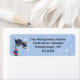 Das Label für die Rückkehradresse für den Urlaub verfügt über eine dünne blaue Polizeiflagge mit roten Beeren und ein blaues Band auf hellblauem Hintergrund mit Schneeflocken. Personalisieren Sie Ihre Rücksendeadresse. Ideal für alle Ihre Ferien-Mailings. Designed by artist ©Tim Coffey und Susan Coffey.