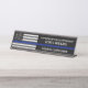 Schreibtisch Namensschild mit der klassischen schwarz-weißen Polizeiflagge mit der dünnen blauen Linie. Editieren Sie den Namen der Abteilung, Offiziersname und Titel, um ein Geschenk für Ihre Lieblings-Strafverfolgung beruflich.