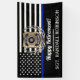 Ein lustiges polizeiliches Flaggendesign mit Ihren persönlichen Glückwünschen zum Rentner. Verziert mit einem edlen goldenen Abzeichen und einem Lorbeerkranz.