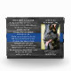 In Loving Memory ~ Ehre deinen geliebten Polizeihund gefallen K9 Offizier und mit diesem Thin Blue Line Polizei Hund Memorial Foto Plakat Holzkastenschild. Personalisieren Sie mit dem Foto, dem Namen und den Daten Ihres Polizeibeamten K9. Zitat: " Mehr als ein Partner " Polizei Hund Oath. Ideal für die K9 Handler-Gedenkstätte für Familien- oder Polizeiabteilungen, um einen gefallenen Polizeihund zu ehren. Personalisieren Sie dieses Polizeihundedenkmal mit Namen, Datum und Text des Uhrenende. In Love Gedächtnispolizei Hund GedenkPlaque. COPYRIGHT © 2020 Judy Burrows, Black Dog Art - Alle Rechte vorbehalten. Polizeihundegedächtnis gefallener Polizeibeamter K9 Foto Block