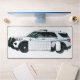 Eine Schreibtischmatte mit einem Foto eines Polizeifahrzeugs von Ponca City.