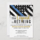 Dieses Design verfügt über eine Polizeiflagge mit schwarz-weißen Streifen und einen dünnen blauen Streifen. Der goldene Text "The Legend is Retiring" setzt sich vor allem aus allen Einzelheiten des Party für den pensionierten Strafverfolgungsbeamten, Sheriff, Kapitän oder Chefs des Party für das Ruhestand zusammen.