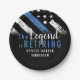 Dieses Design verfügt über eine Polizeiflagge mit schwarz-weißen Streifen und einen dünnen blauen Streifen. Der Text "The Legend is Retiring" liegt über dem anpassbaren Namen des pensionierenden Strafverfolgungsbeamten, Sheriffs, Kapitäns oder Chefs. Feiern Sie diesen Meilenstein im Stil!