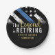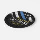 Dieses Design verfügt über eine Polizeiflagge mit schwarz-weißen Streifen und einen dünnen blauen Streifen. Der Text "The Legend is Retiring" in Gold liegt über dem anpassbaren Namen des pensionierenden Strafverfolgungsbeamten, Sheriffs, Kapitäns oder Chefs. Feiern Sie diesen Meilenstein im Stil!