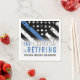 Dieses Design verfügt über eine Polizeiflagge mit schwarz-weißen Streifen und einen dünnen blauen Streifen. Der Text "The Legend is Retiring" liegt über dem anpassbaren Namen des pensionierenden Strafverfolgungsbeamten, Sheriffs, Kapitäns oder Chefs. Feiern Sie diesen Meilenstein im Stil!