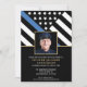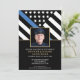 Dieses Design verfügt über eine Polizeiflagge mit schwarz-weißen Streifen und einen dünnen blauen Streifen. Ein Foto des Offiziers sitzt vor allen Einzelheiten des Party für den pensionierten Strafverfolgungsbeamten, Sheriff, Kapitän oder Chefs des Party der Pensionierung.