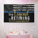 Dieses Design verfügt über eine Polizeiflagge mit schwarz-weißen Streifen und einen dünnen blauen Streifen. Der Text "The Legend is Retiring" in Gold liegt über dem anpassbaren Namen des pensionierenden Strafverfolgungsbeamten, Sheriffs, Kapitäns oder Chefs. Feiern Sie diesen Meilenstein im Stil!