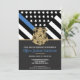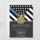 Dieses Design verfügt über eine Polizeiflagge mit schwarz-weißen Streifen und einen dünnen blauen Streifen. Das polizeiliche Abzeichen und der Goldtext liegen über allen Einzelheiten des Party für den pensionierten Strafverfolgungsbeamten, Sheriff, Kapitän oder Chefs des Party für das im Ruhestand.