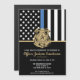 Dieses Design verfügt über eine Polizeiflagge mit schwarz-weißen Streifen und einen dünnen blauen Streifen. Das polizeiliche Abzeichen und der Goldtext liegen über allen Einzelheiten des Party für den pensionierten Strafverfolgungsbeamten, Sheriff, Kapitän oder Chefs des Party für das im Ruhestand.
