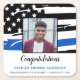 Herzlichen Glückwunsch! Fügen Sie die Touch zum Abschluss Ihrer Polizeiverrentungs- oder Abschlussfeier mit diesen dünnen blauen Linien Polizei Abschluss Untersetzer und Party Vorräten. USA amerikanische Flagge Design in Polizei Flag Farben, modernes Design. Diese Gratulation Polizeibeamten Abschluss Sammlung wird ein Favorit sein. Personalisieren Sie sich mit Offizieren Foto, Name und Datum, und Glückwunsch kann geändert werden, um glücklich Ruhestand für Polizei-Ruhestand Party, oder Polizei-Akademie-Partei. Sehen Sie sich unsere Thin Blue Line-Kollektion an, um Einladungen für Polizeigrafen, Polizeigeschenke, Gastgeschenke und Vorräte zu finden. COPYRIGHT © 2020 Judy Burrows, Black Dog Art - Alle Rechte vorbehalten. Polizeiliche Graduierungspartei Foto Thin Blue Line Square Paper Untersetzer