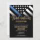 Ehre den Einsatz und die harte Arbeit eines neuen Strafverfolgungsbeamten mit dieser anpassbaren Einladung des Abschlusses. Mit der Polizeiflagge mit fett schwarz-weißen Streifen und einer stolzen blauen Linie symbolisiert dieses Design Stärke, Service und Opfer. Die Einladung ist personalisiert mit dem Namen und den Einzelheiten des Absolventen und Party, was es zu einem unvergesslichen Sake für Freunde, Familie und andere Offiziere macht. Ideal, um einen Abschluss, eine Werbeaktion oder einen Meilenstein in der Karriere eines zukünftigen Offiziers zu feiern. Laden Sie Ihre Gäste stilvoll ein und zeigen Sie Unterstützung für das neueste Mitglied der Thin Blue Line Community.