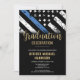 Ehre den Einsatz und die harte Arbeit eines neuen Strafverfolgungsbeamten mit dieser anpassbaren Einladung des Abschlusses. Mit der Polizeiflagge mit fett schwarz-weißen Streifen und einer stolzen blauen Linie symbolisiert dieses Design Stärke, Service und Opfer. Die Einladung ist personalisiert mit dem Namen und den Einzelheiten des Absolventen und Party, was es zu einem unvergesslichen Sake für Freunde, Familie und andere Offiziere macht. Ideal, um einen Abschluss, eine Werbeaktion oder einen Meilenstein in der Karriere eines zukünftigen Offiziers zu feiern. Laden Sie Ihre Gäste stilvoll ein und zeigen Sie Unterstützung für das neueste Mitglied der Thin Blue Line Community.