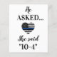Laden Sie Ihre Freunde und Familie zu feiern Ihren besonderen Tag mit diesen 'Er Fragte Sie Said 10-4" Thin Blue Line Polizei themed Hochzeit speichern Sie die Dattelkarten . Diese Budget Hochzeitskarten haben eine Umschlagoption. Passen Sie Ihre Namen an, und alle Ihre Hochzeitsinformationen auf der Rückseite. Diese Hochzeitsabholung wird bei allen Polizeibeamten, der Ehefrau der Polizei und der Strafverfolgungsbehörden zum Favoriten. COPYRIGHT © 2020 Judy Burrows, Black Dog Art - Alle Rechte vorbehalten. Polizeiliche Hochzeitssache speichert Postkarte