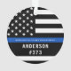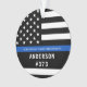 Thin Blue Line Police Officer Weihnachtsschmuck - Amerikanische Flagge in Polizei Flag Farben, moderne schwarz und blau Design . Passen Sie Ihren Namen an und personalisieren Sie ihn mit dem Namen der Polizeibeamten und dem Abzeichen. Dieses personalisierte Vollzugsschmuck eignet sich hervorragend für Polizeidienststellen und Strafverfolgungsbeamte, kleine Geschenke und Weihnachtsgeschenke für Polizeibeamte. Bestellen Sie diese Polizeischmuck Großhandel für die Polizeiakademie oder Polizeidienstgifte, polizeiliche Weihnachtsfeiern kleine Geschenke. COPYRIGHT © 2020 Judy Burrows, Black Dog Art - Alle Rechte vorbehalten. Polizei Personalisiert dünn blauer Linie Strafvollstreckung