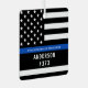 Thin Blue Line Police Officer Weihnachtsschmuck - Amerikanische Flagge in Polizei Flag Farben, moderne schwarz und blau Design . Passen Sie Ihren Namen an und personalisieren Sie ihn mit dem Namen der Polizeibeamten und dem Abzeichen. Dieses personalisierte Vollzugsschmuck eignet sich hervorragend für Polizeidienststellen und Strafverfolgungsbeamte, kleine Geschenke und Weihnachtsgeschenke für Polizeibeamte. Bestellen Sie diese Polizeischmuck Großhandel für die Polizeiakademie oder Polizeidienstgifte, polizeiliche Weihnachtsfeiern kleine Geschenke. COPYRIGHT © 2020 Judy Burrows, Black Dog Art - Alle Rechte vorbehalten. Polizei Personalisiert dünn blauer Linie Strafverfolgung Metallverzierung
