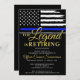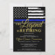 Dieses Design verfügt über eine Polizeiflagge mit schwarz-weißen Streifen und einen dünnen blauen Streifen. Der Text "The Legend is Retiring" setzt sich vor allem aus den Party für den pensionierten Strafverfolgungsbeamten, Sheriff, Kapitän oder Chefs des Party für das Ruhestand zusammen.
