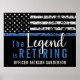 Dieses Design verfügt über eine Polizeiflagge mit schwarz-weißen Streifen und einen dünnen blauen Streifen. Der Text "The Legend is Retiring" liegt über dem anpassbaren Namen des pensionierenden Strafverfolgungsbeamten, Sheriffs, Kapitäns oder Chefs. Feiern Sie diesen Meilenstein im Stil!