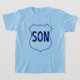 Dieses Shirt ist mit einem blauen Schild um das Wort "Sohn" herum versehen, das eine dünne blaue Linie durch sich hat, um der Welt lassen, dass Sie Ihre Eltern unterstützen.