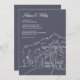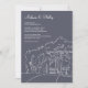 Hochzeit in Urlaubsort New York City, Central Park Polizist Cot Gazebo Hochzeitsfeier Einladung. Grau mit weißer Silhouette Illustration dieses beliebten Zentralen Parks Hochzeitslocation. Einfach zu personalisieren Hochzeitsvorlage.