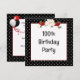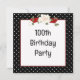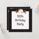 Schwarz-Weiß Polka Dotframe mit Blumenstrauß und rotem Band für eine 100. Geburtstagsfeier. Alle Texte können geändert werden.