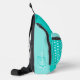 Moderne Mädchen aqua und weiße Polka Punkt und Name Kreuz Körper Tasche. Personalisieren Sie mit Ihrem eigenen Namen und Initial. Dieses Beispiel lautet: Lauren B. Design von Sarah Trett für www.mylittleeden.com