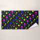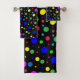 Diese lustigen Badetücher sind mit Kreisen in einem Aufruhr von bunten Ballon Bubble Polka Punkte: gelb, grün, türkis, blau, rot, orange und rosa. Passen Sie den schwarzen Hintergrund auf einem oder allen der verschiedenen Handtücher leicht an die Farbe Ihrer Wahl an.