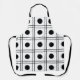 Polka Dot Circle Black and White Karo Muster Schürze entworfen von Nisha Prabhu CuteHomeGifts. Schwarz-Weiß-Schürze mit schwarzem Polka-Punktkreis mit horizontalen und vertikalen schwarzen Streifen auf weißem Hintergrund. Mit unserer Polka Dot Circle Black and White Karo Pattern Schürze kochen Sie stilvoll! Diese spielerische und schicke Schürze besticht durch eine reizvolle Mischung aus Polka-Punkten und karierten Mustern in Schwarz-Weiß-Klassikern. Diese Schürze ist sowohl stilvoll als auch funktional und eignet sich hervorragend für eine Touch Spaß an der Küche. Mit diesem auffälligen Design, das Mode und Nützlichkeit mühelos kombiniert, heben Sie sich in der Küche hervor. Genießen Sie Ihre kulinarische Erfahrung mit unserer trendigen Schürze, die so stilvoll wie praktisch ist!