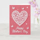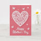 This design shows a warm crimson background with a large white heart at the center, filled with lace-like floral curls that feel like careful paper-cut work ❤️. A thin dotted line appears above the heart, as if the heart is gently hanging in place, giving the scene a quiet, tender balance. Soft lighting and faint shadows make the heart look slightly raised, like a keepsake someone would hold close. Small white butterflies flutter around it, their wings turned toward the heart as if circling in a fond, friendly dance 🌼. Tiny star shapes are scattered nearby, adding little points of sparkle without crowding the main image. Beneath the heart, a flowing cursive-style message sits centered in white, standing out clearly against the red. The overall layout keeps the eye moving from the hanging heart down to the message in one smooth line. The white butterflies and small stars sit mostly around the upper sides of the heart, leaving the lower area open for the text.