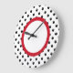 Moderne Wände mit schönen roten, schwarzen, weißen und farbigen Linien, darunter ein stilvolles schwarz-weißes Polka-Muster auf der Uhr-Oberfläche. Entworfen für Ihre Küche, Wohnzimmer oder jedes Zimmer in Ihrem Haus will Sie, Ihre Wände stilvoll zu dekorieren.