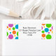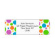 Vielfarbiges Polka Punktmuster mit Kreisen in Karikaturen. Farbenfroh, fröhlich und lustig. Lila, grüne, orangefarbene, gelbe und blaue Kreise bilden dieses skurrile gürtelförmige Muster.