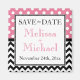 Stilvolle Sonderanfertigung Sichern Sie die Datumsmagnete für die Ankündigung Ihrer Hochzeit, die mit weißen Polka-Punkten über Rosa oben und einem schwarz-weißen Zickzack-Muster unten gestaltet wurde.
