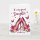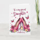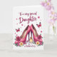 This card features a polished digital illustration centered on a pair of fuchsia high-heeled pumps, posed close together as if sharing a private moment ❤️. Deep pink rose blossoms sit on the pointed toes, and a light glittery sheen catches across the shoes. Between the heels rests a small rectangular perfume bottle with warm amber liquid and a golden stopper, adding a cozy, affectionate touch to the scene. Around the edges, pink and soft yellow daisy-like flowers form a loose border, with hints of green leaves tucked in for contrast 🌼. A few butterflies with patterned pink wings hover nearby, angled as though drifting from one flower to the next. The message text sits at the top in flowing cursive-style lettering, with “To a very special Daughter” and “Mother’s Day” arranged like a gentle header in a coordinated pink tone. The background remains bright white, making the pinks, yellows, and greens stand out clearly while the butterflies and flowers frame the shoes and bottle.