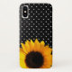 Schützen Sie Ihr Handy in diesem stilvollen, schwarz gemacht mit kleinen weißen Polka Punkte und Grafiken von einer großen gelben Sonnenblume, unten. Anpassen, um einen eigenen Text zu diesem hübschen Fall hinzuzufügen.