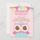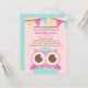 Schau, wie erwartet ein Kind! Feiern Sie mit Mami vor dem Fälligkeitsdatum mit dieser niedlichen Eule-Babydusche. Die Einladung hat eine niedliche kleine rosa Eule mit großen runden Augen, die aus einem blauen Polka dots Ei geschlüpft ist. Jägerfahnen an der Spitze für den fröhlichen Anlass. Auf der Rückseite ist das gleiche Muster aus dem Ei. Stellen Sie sich Ihre Babydusche in den Vorlagen vor.