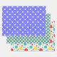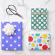 A Wrapping Paper Sheet Set Of Colorful Polka Dots In Purple, Green And A Multi Colored One